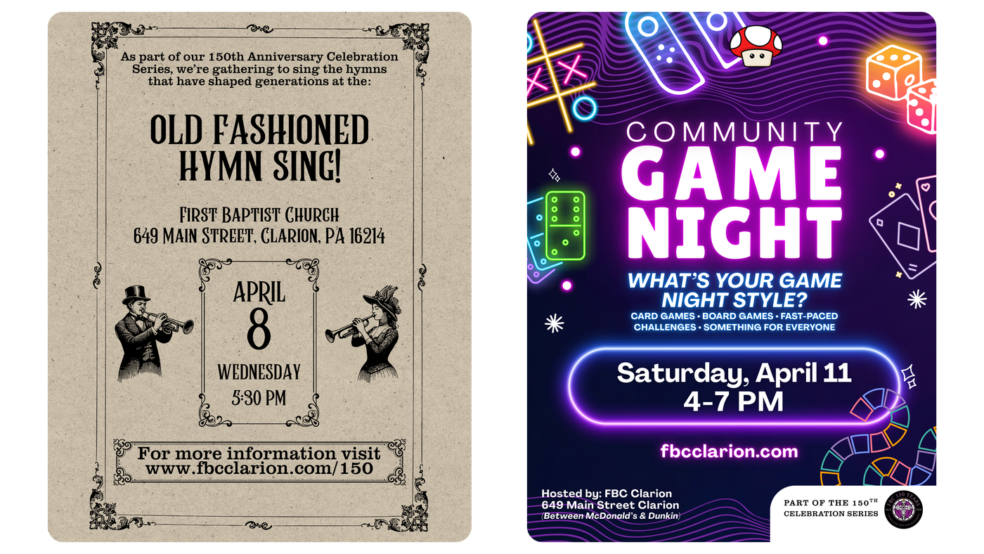 April 12, 2026, we celebrate 150 years of gathering, serving, and growing together on Main Street—and we’re marking the moment with a weekend designed for our church family and our community.